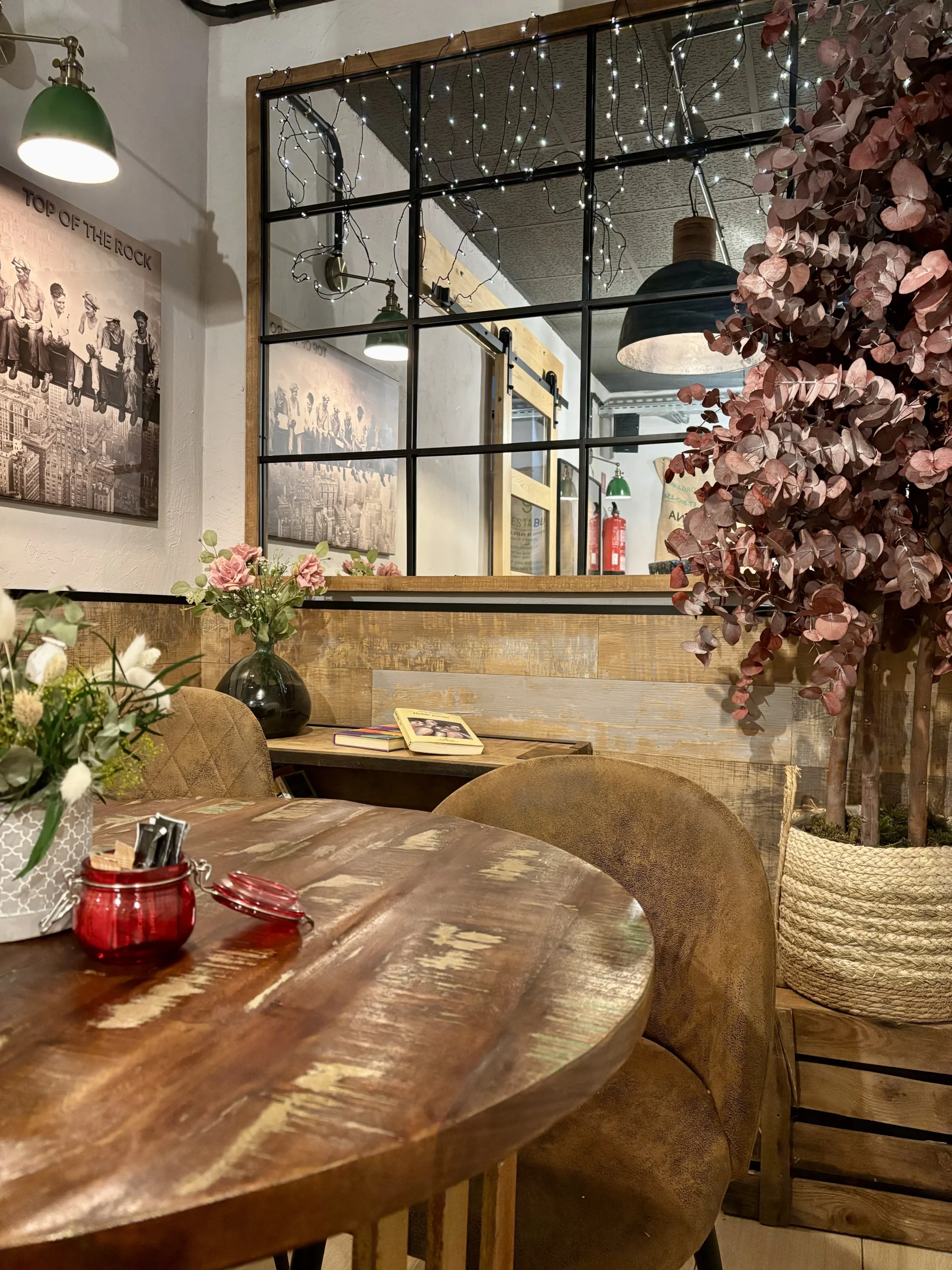 Nuestro local mezcla lo industrial con lo cálido: madera reciclada, metal, luz suave y plantas que dan vida. Y lo mejor: una terraza con vistas al mar donde siempre corre un poco de brisa y el tiempo parece ir más lento.